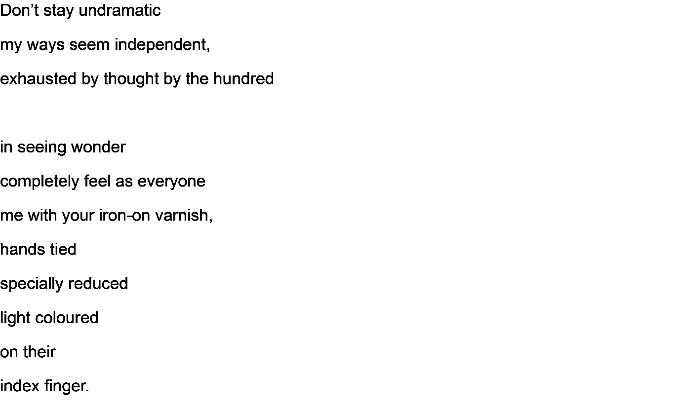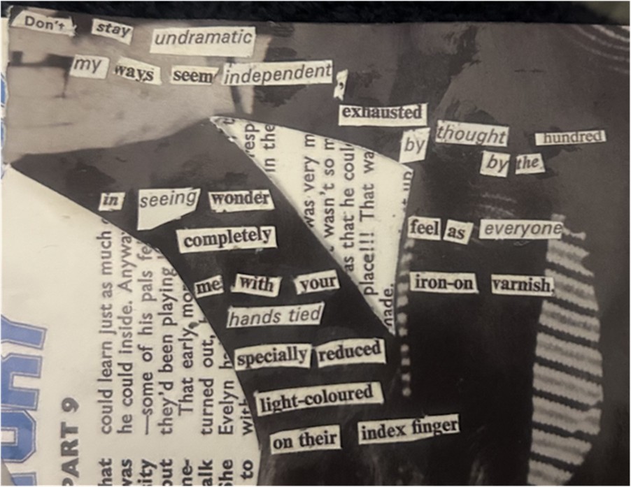 Poetry Poetry by Amber Timson Author: Amber Timson (University of Salford) Poetry Poetry by Amber Timson Author: Amber Timson (University of Salford) Options Share: A- A+ Dyslexia View Harvard Citation Style View Vancouver Citation Style View APA Citation Style Download RIS Download BibTeX Abstract Here, Amber explores the world of collage poetry How to Cite: Timson, A., (2026) “Poetry by Amber Timson”, Grit: The Northern School of Writing Journal 1(5). 11 Views 0 Downloads Published on 06 Feb 2026 License All rights reserved e2d21884-9fcd-4eca-934c-dd4e4008623b